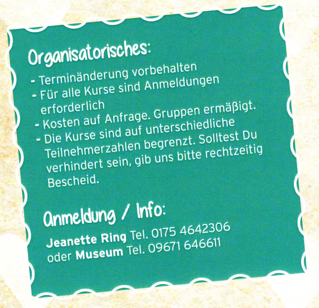 Im Rahem des Museumspädagogischen Kinderprogramms werden Workshops, Kurse, Bastelrunden und Führungen angeboten. Die Kräuterpädagogin Jeanette Ring stellte wieder eine beachtliche Anzahl an interessanten Themen zusammen.